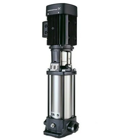 La pompe multicellulaire verticale CR5 de chez GRUNDFOS est composée de diffuseurs, d’impulseurs, de chambres intermédiaires, de chemises extérieures et d’un arbre en acier inoxydable. La tête et le pied de la pompe a eau sont en fonte. La peinture par électrophorèse garantie une meilleure resistance à la corrosion. La garniture mécanique à cartouche est en acier inoxydable avec faces de friction en carbure de silicium. Les orifices d’aspiration et de refoulement sont en 1″1/4 – 33/42 F. La température du liquide pompé peut être compris entre -20°C et +120°C dans un endroit ne dépassant 40°C. Le débit maximal est de 8 m3/h pour la pompe a eau Grundfos CR5. La pompe a eau CR à une alimentation electrique en triphasé 380v avec un moteur electrique IE3 permettant d’optimiser la consommation énergétique. Pour un fonctionnement optimal, la pompe doit être associée à un organe de commande comme par exemple un reservoir a vessie ou un presscontrol.